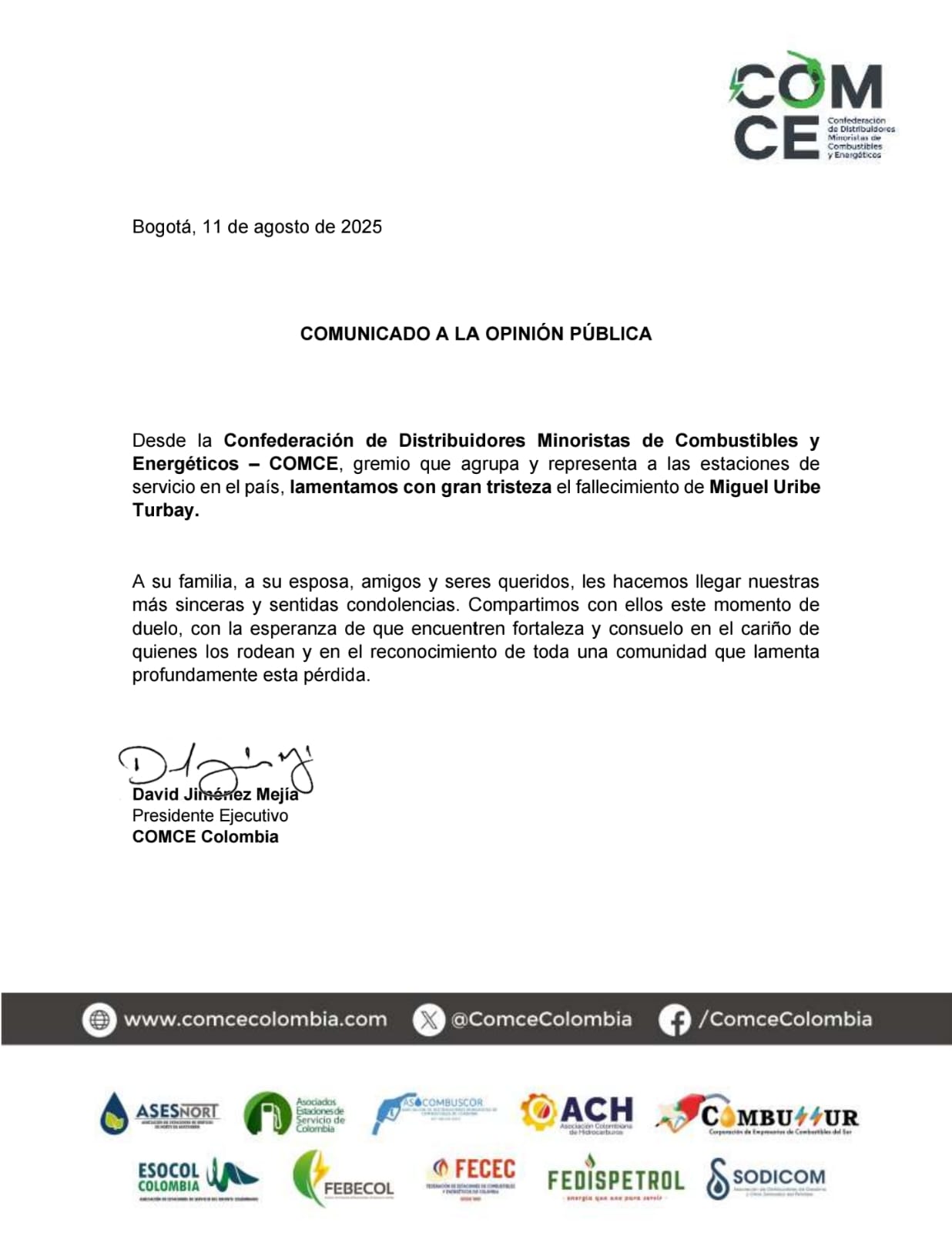 Comunicado COMCE: Fallecimiento de Miguel Uribe Turbay, Senador y Precandidato presidencial. agosto 11, 2025 . Comunicado COMCE: Fallecimiento de Miguel Uribe Turbay, Senador y Precandidato presidencial. Leer más »