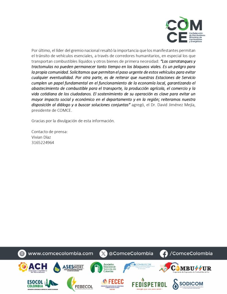 COMCE y ESOCOL Colombia hacen un llamado urgente a levantar bloqueos en Boyacá y encontrar soluciones.Por Admin1 / agosto 6, 2025